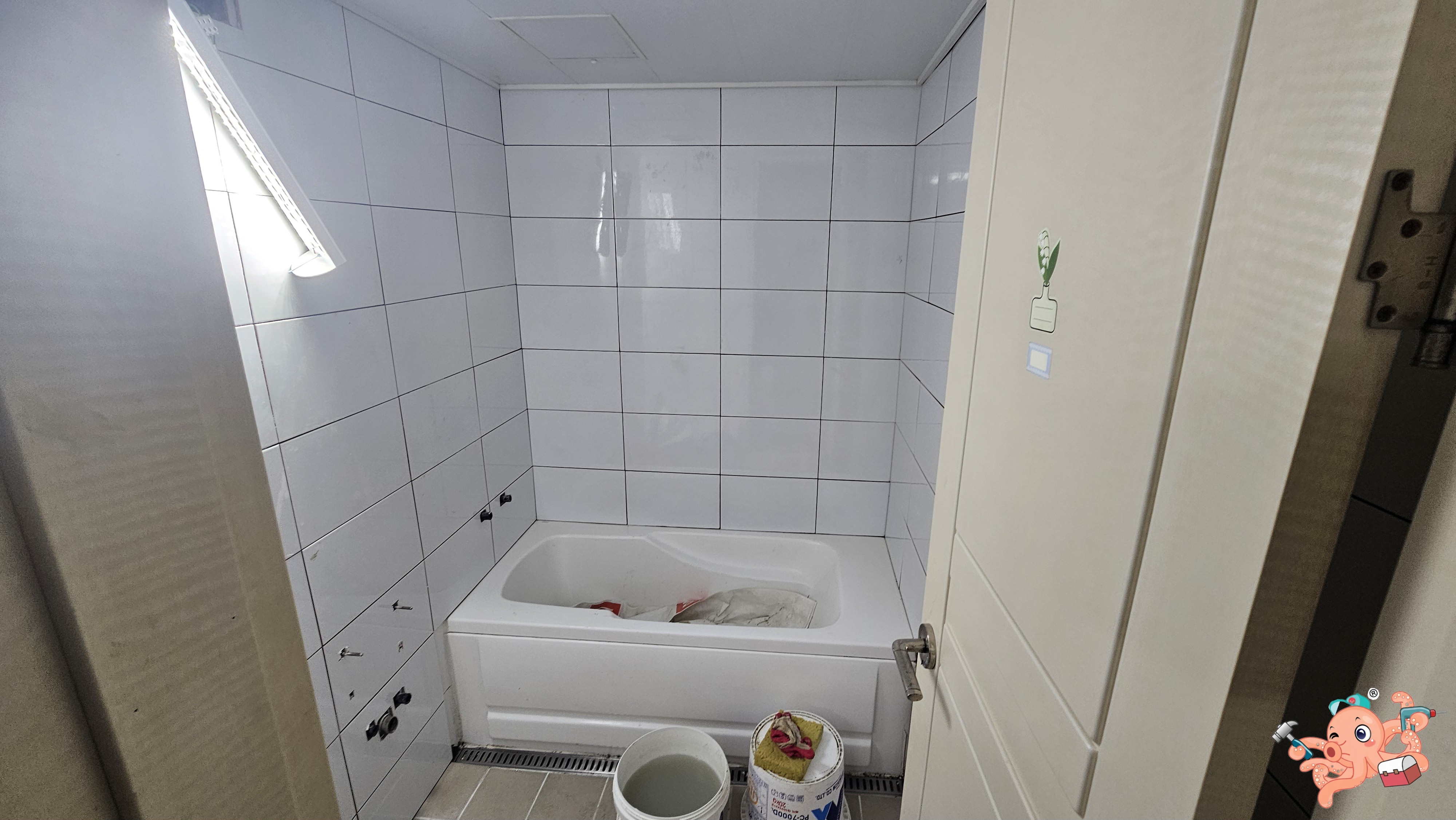 "전투가 막바지에 다다랐을 때, 옥토바스 장군은 비장의 무기를 꺼내 들었으니... 그것은 바로 욕실의 수명을 결정짓는 '코너 실링(Sealing)' 작업이었소. 흥흥 장군은 숨을 고르고, 마치 나비가 꽃잎 위를 유영하듯 부드러우면서도 단호한 몸놀림으로 실리콘 총을 고쳐잡았소. 이름하여 '나비빌래' 신공!