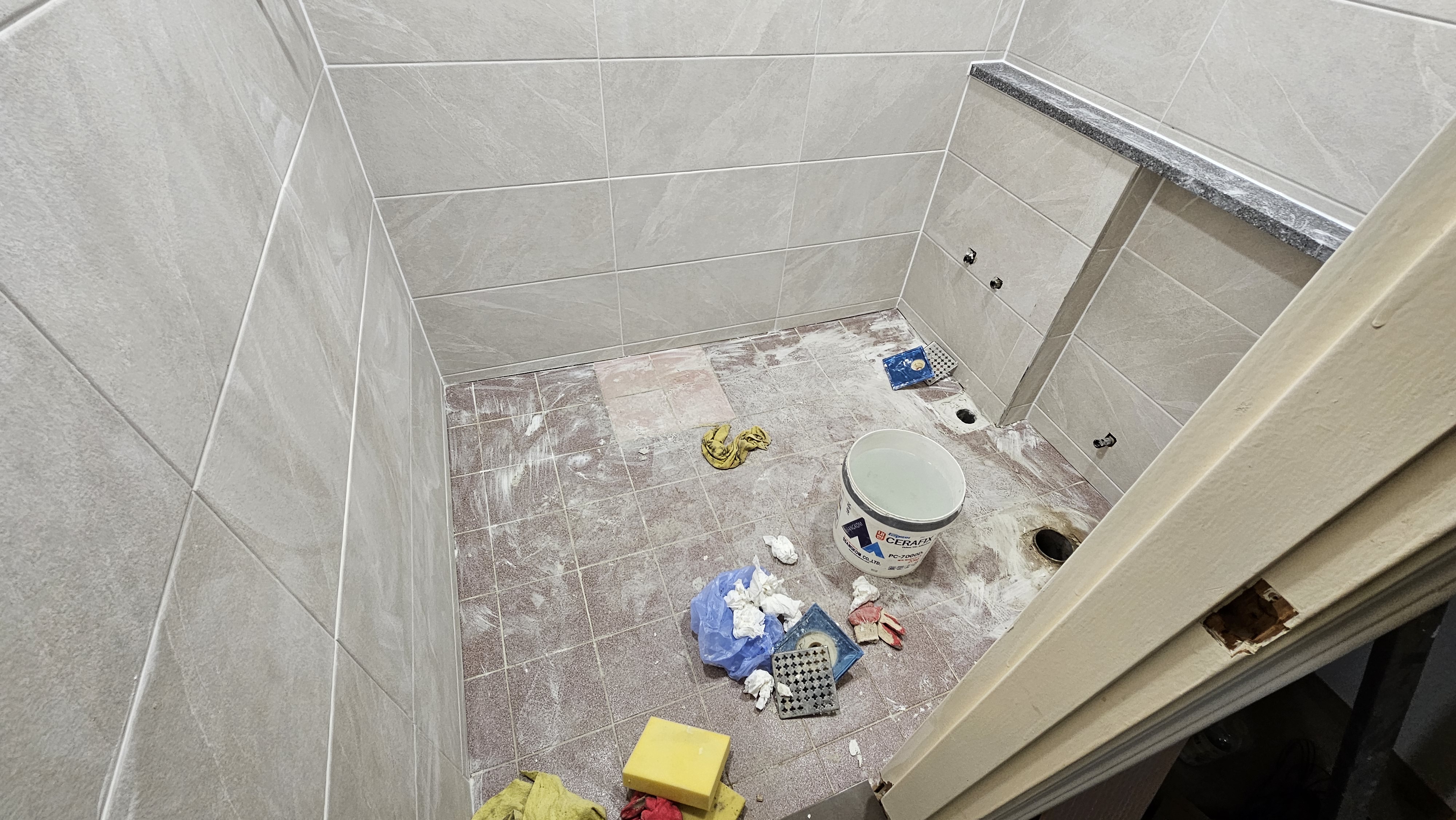 "장군의 명성은 담장을 넘는 법!" 현장의 위용을 지켜보던 앞집 사람 초차 장군의 신묘한 춤사위에 매료되어 즉시 욕실 1칸과 주방 타일의 구원을 요청해 왔으니, 장군의 보검은 쉴 틈이 없다. 앞집 대첩의 기록은 다음 기회에 전하기로 하며 장군은 다시 말머리(작업차)를 돌린다. 흥흥