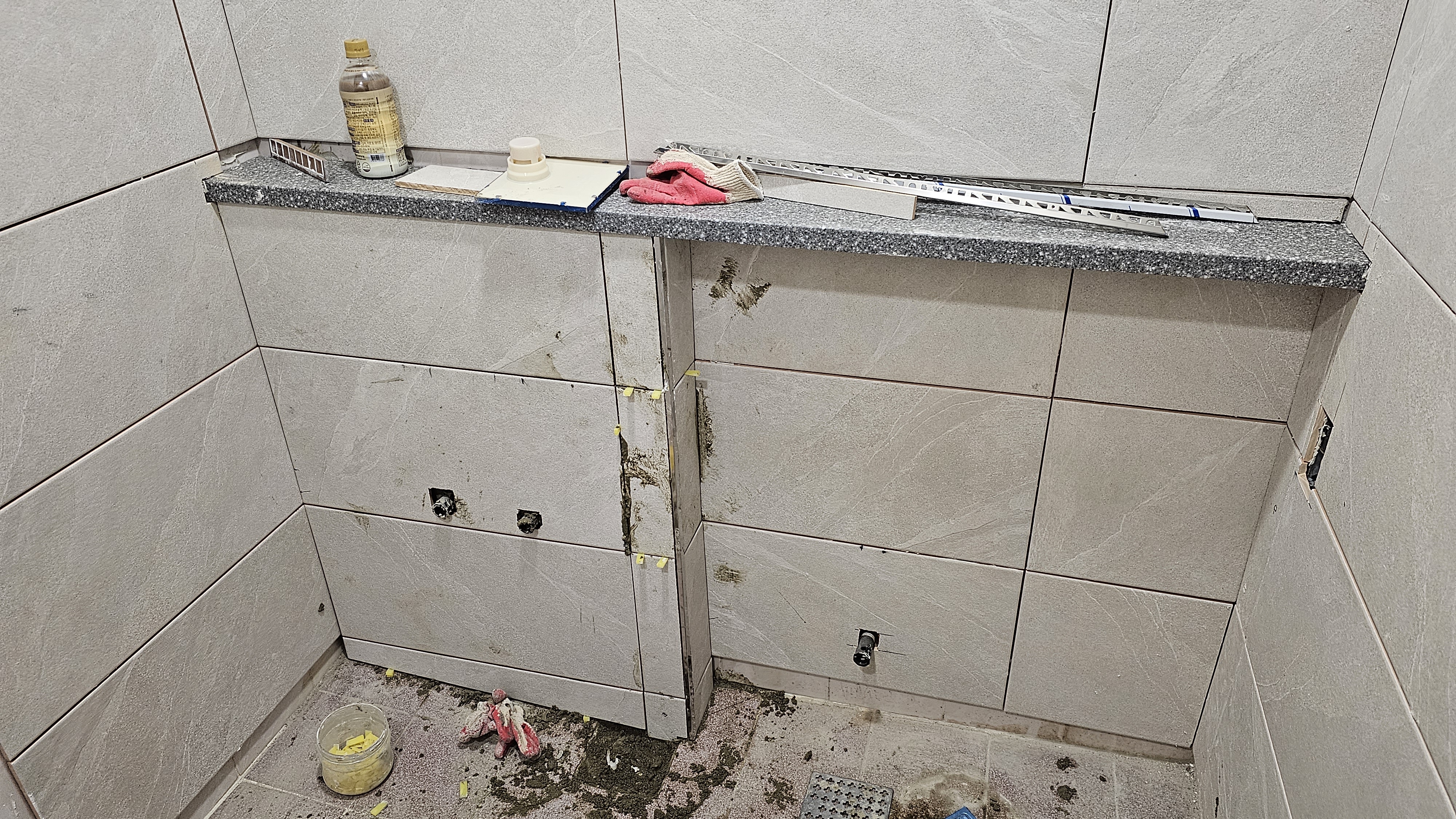 타일을 바르는 과정에서도 장군은 두 가지 초식을 나누어 쓰셨다. 흥흥