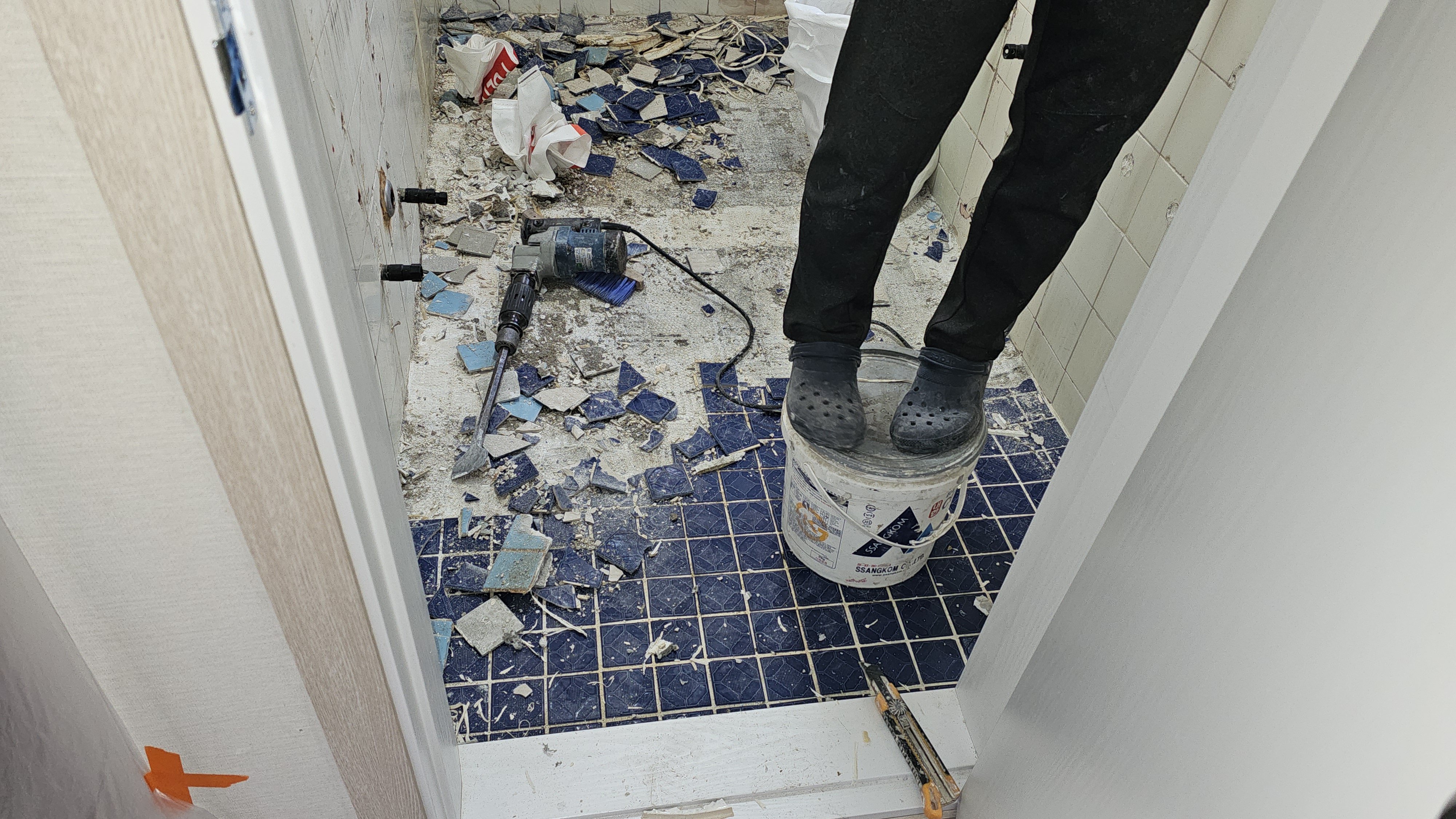 무릇 전쟁의 시작은 백성을 보호하고 전장을 정돈하는 것부터 시작되는 법이니, 장군은 가장 먼저 철저한 **輔養(보양)**의 명을 내렸다. 먼지 하나, 파편 하나가 거실로 침범하지 못하도록 비닐 천막으로 철저히 가린 후에야 본격적인 **撤去(철거)**에 돌입했다. 낡은 욕조와 기구들을 들어내고, 마침내 깊숙이 박힌 **타일 撤去(타일 철거)**까지 이어지는 공세는 그야말로 **破竹之勢(파죽지세)**였다.