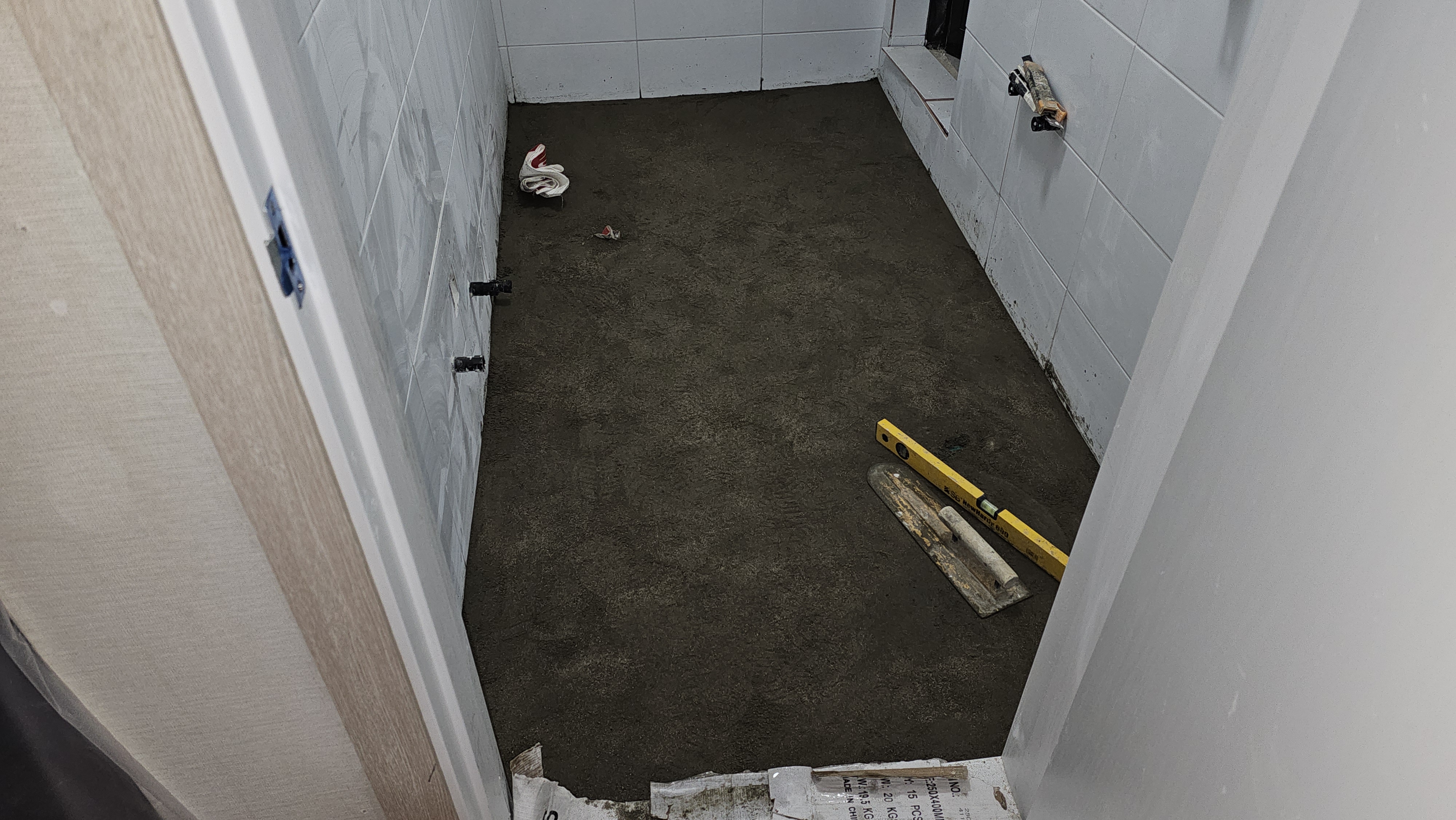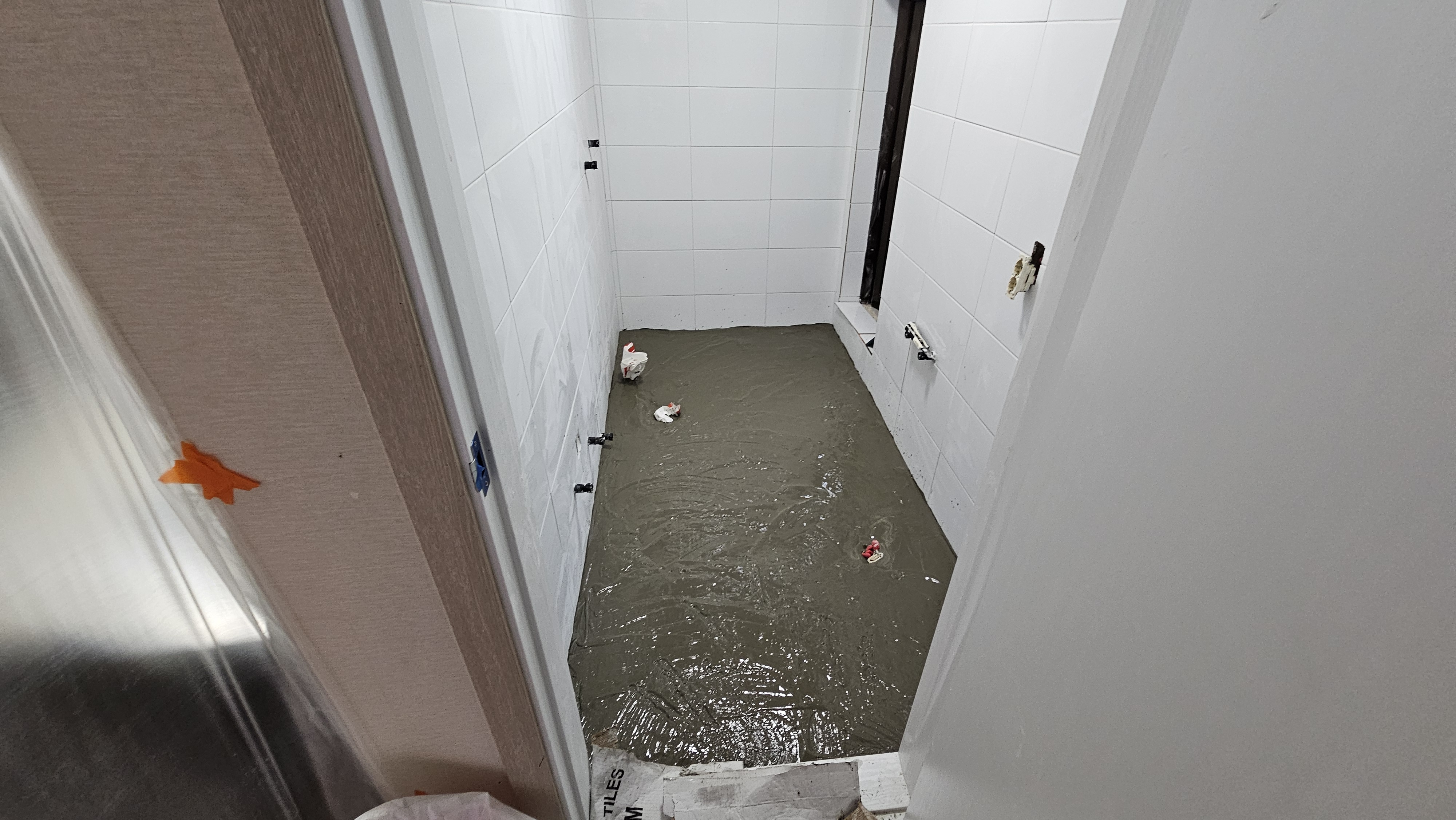 방수가 굳건해지자 그 위에 **바닥 시다지(평탄화)**를 다지기 시작했다. 모래와 시멘트의 완벽한 배합으로 이루어진 대지는 장군의 명령에 따라 한 치의 오차도 없이 고르게 펼쳐졌으니, 이는 곧 승리를 위한 탄탄한 기반이 되었다. 하지만 바닥이 평평하다고 다가 아니다. 물이 막힘없이 흘러가게 하는 물메(쭈꾸미/구배) 작업이야말로 욕실의 奧義(오의)라 할 수 있다.