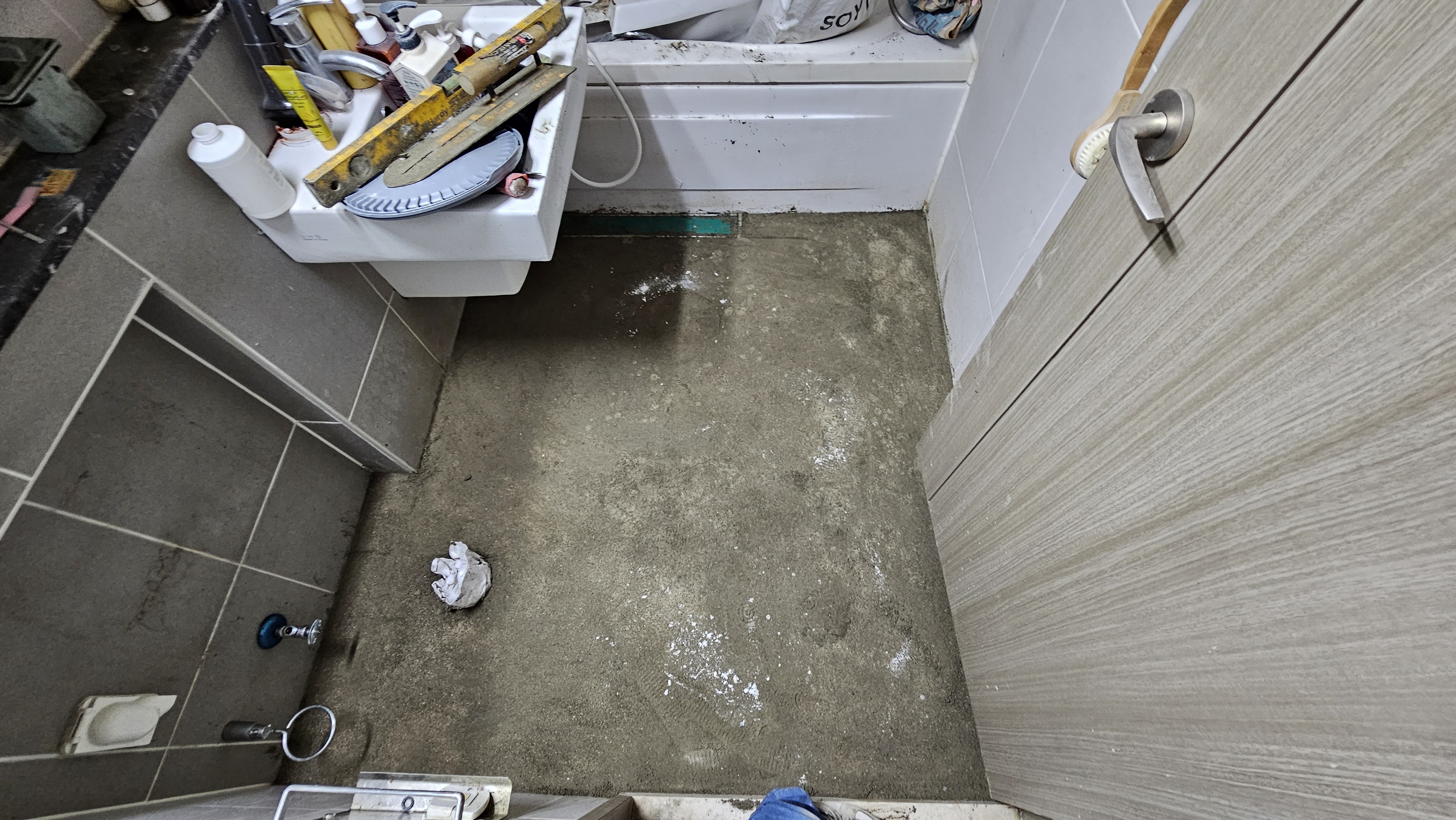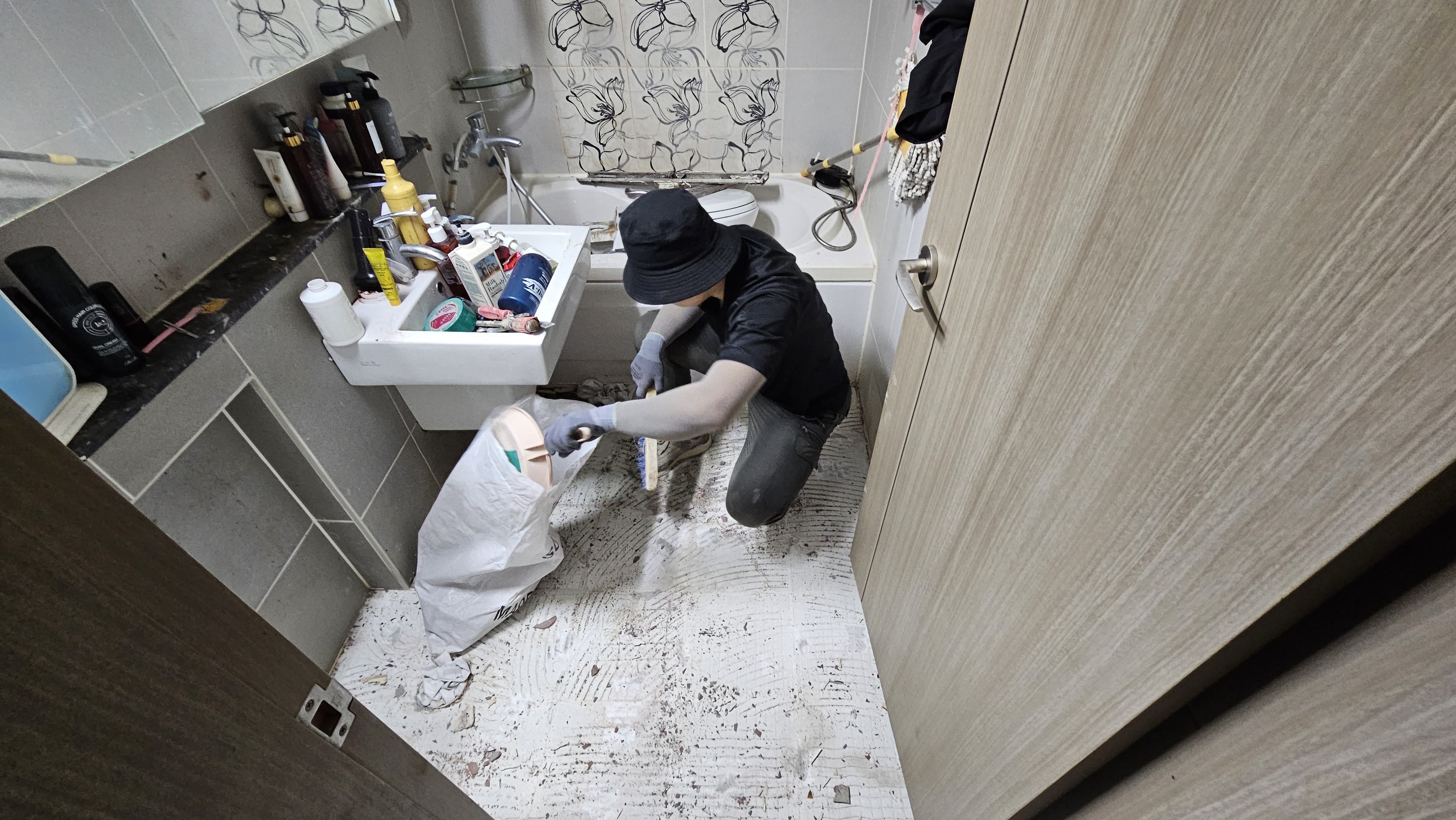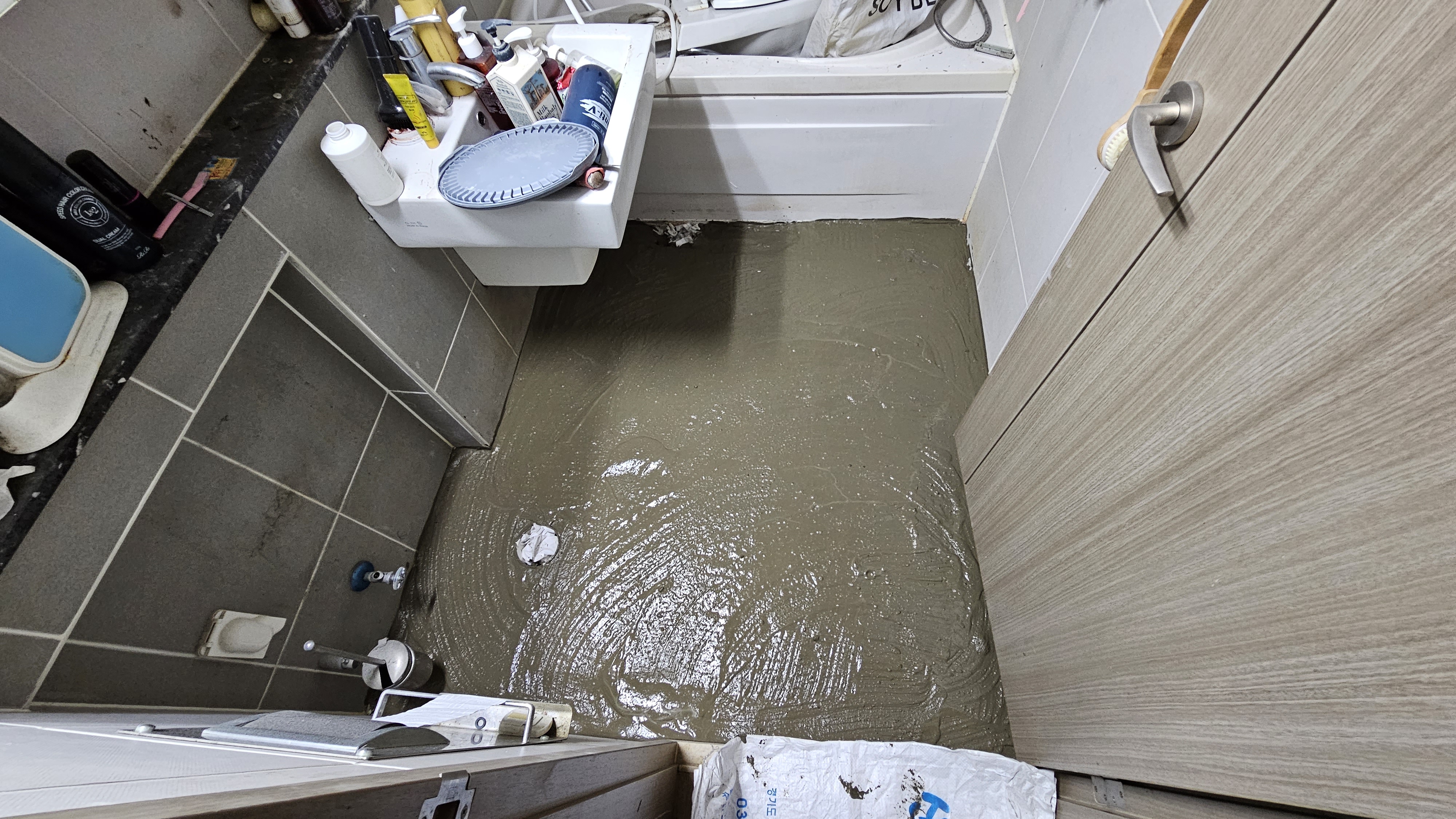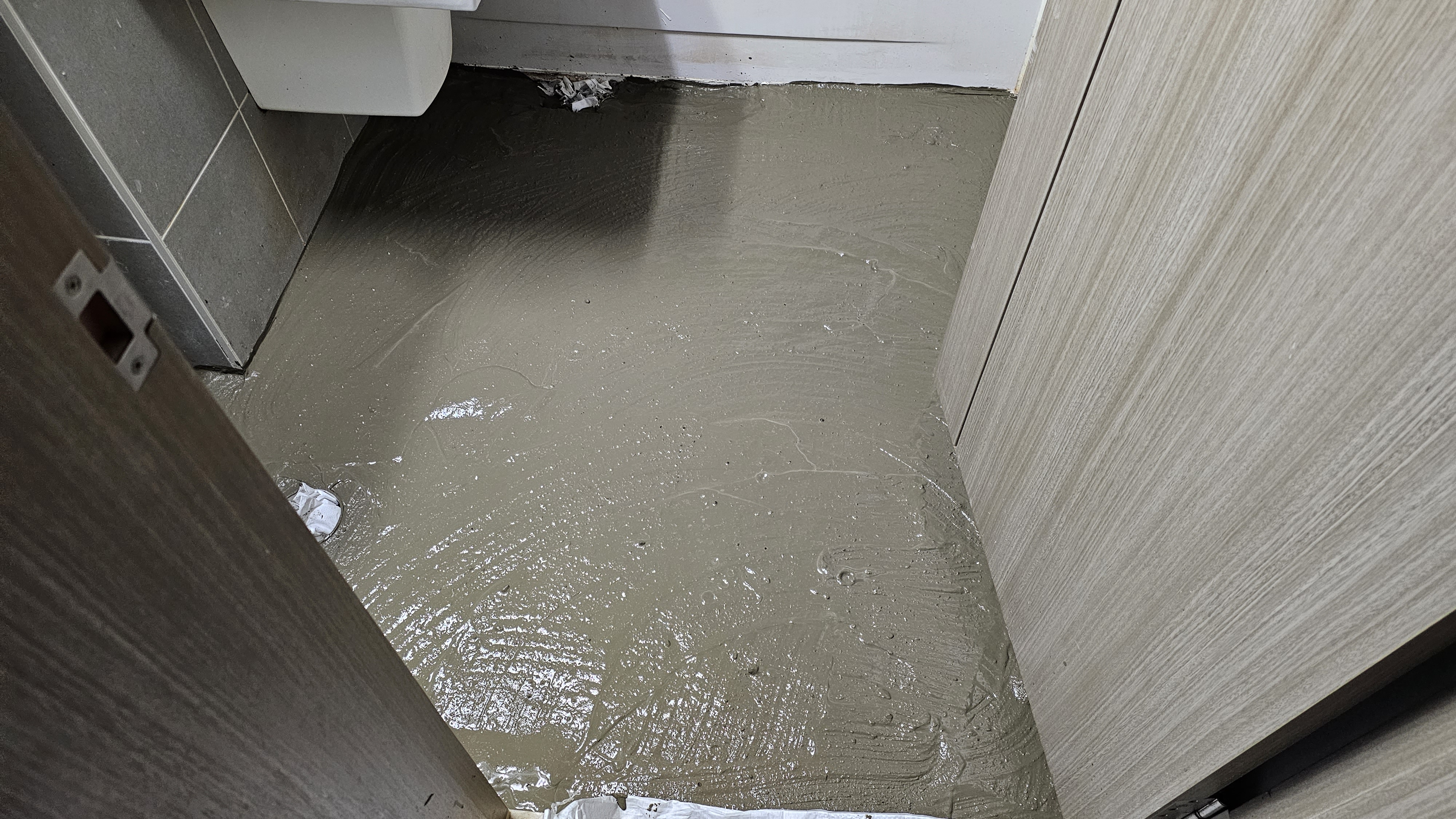 특수 비방의 약재를 황금 비율로 배합하여 바닥 구석구석에 도포하니, 그 매끄러운 회색빛 갑옷은 단 한 방울의 습기도 허용하지 않는 **'금성탕지(金城湯池)'**와 같았도다. 이 방수층이 굳어가는 과정은 마치 난공불락의 요새를 굳히는 것과 같으니, 이제 백성은 아랫집과의 불화(不和)에서 벗어나 평온한 잠자리에 들 수 있게 되었느니라.