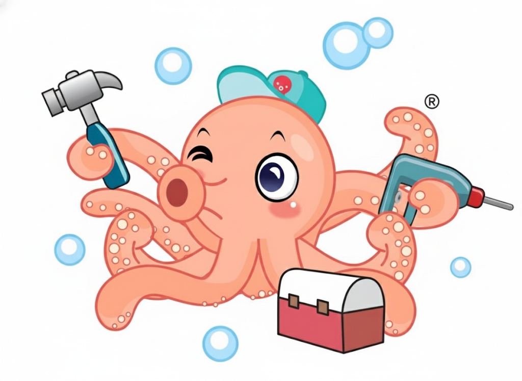 문어가 8개의 다리로 먹잇감을 놓치지 않듯, 저 옥토바스 장군은 8가지 전문 기술을 자유자재로 구사하며 욕실의 모든 문제를 단숨에 낚아채 해결하나이다!
